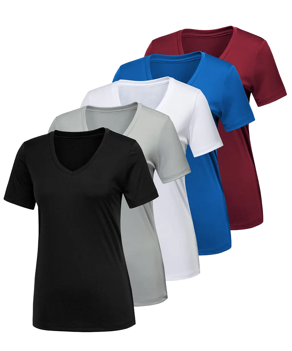CE’ CERDR 5/7 Pack Workout Shirts for Women, Moisture Wicking Quick Dry Active Athletic Women’s Gym Performance T Shirts(5 Pack Black White Light Grey Navy Dark Red)