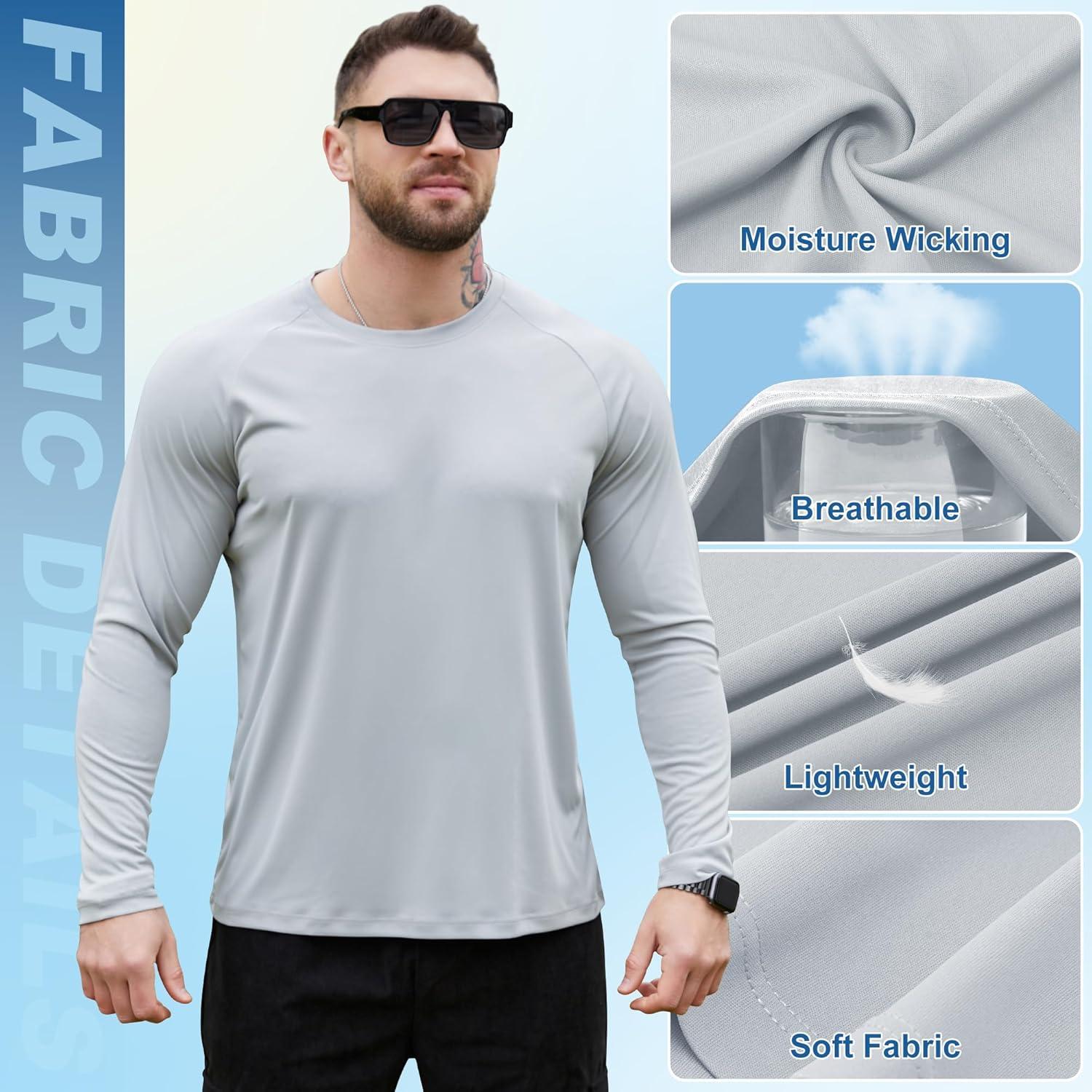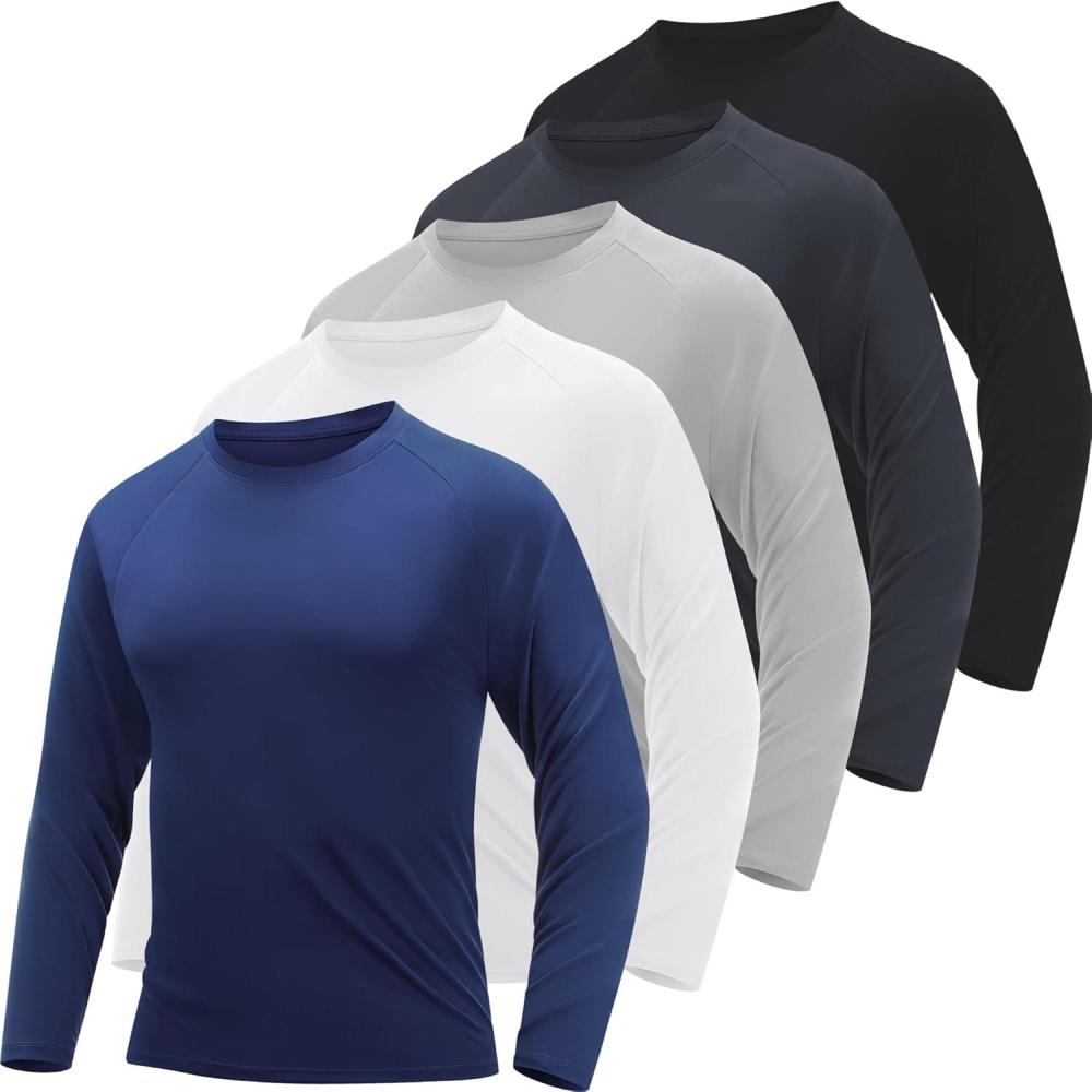 5/7 Pack Long Sleeve Shirts for Men – Quick Dry Moisture Wicking UPF 50+ Sun Protection T-Shirts for Workout Fishing Casual(5c – Black/Dark Grey/Navy/White/Light Gray)