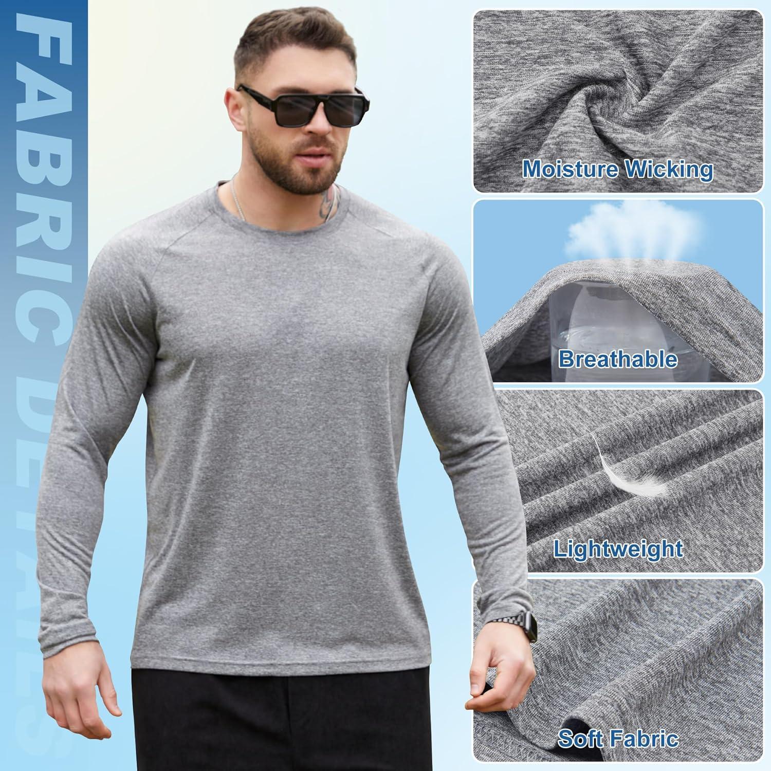 5/7 Pack Long Sleeve Shirts for Men – Quick Dry Moisture Wicking UPF 50+ Sun Protection T-Shirts for Workout Fishing Casual(5f – Black/Blue/Dark Grey/Army Green/Red)