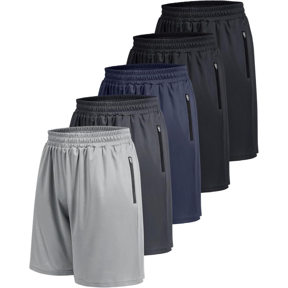 5 Pack Athletic Basketball Mens Shorts with Zipper Pockets – Lightweight Quick Dry Gym Workout Running Shorts for Men(1-black/Black/Dark Grey/Navy Blue/Light Grey)
