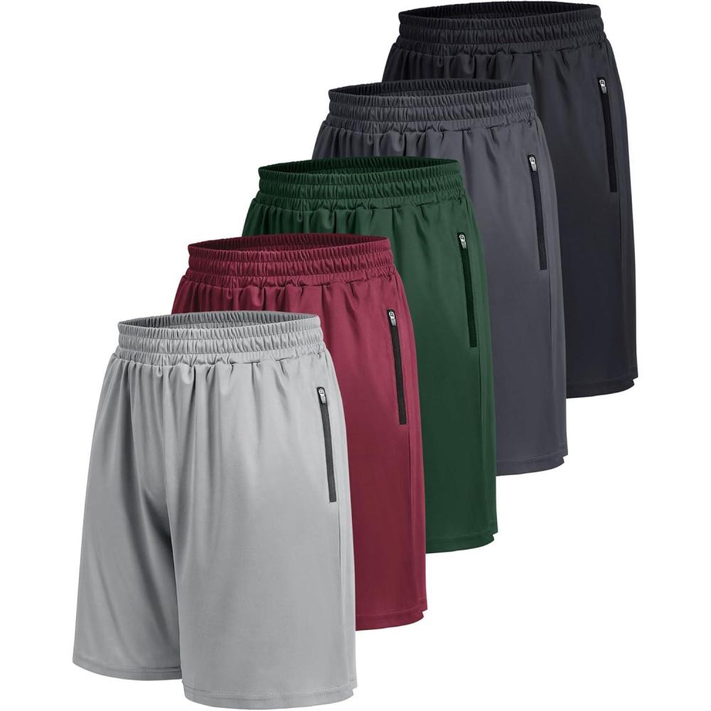 5 Pack Athletic Basketball Mens Shorts with Zipper Pockets – Lightweight Quick Dry Gym Workout Running Shorts for Men(3-black/Dark Grey/Light Grey/Army Green/Wine)