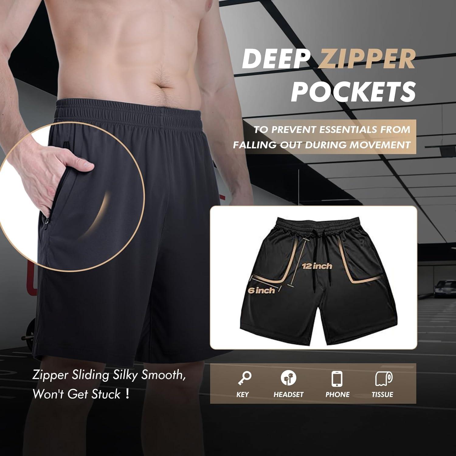 5 Pack Athletic Basketball Mens Shorts with Zipper Pockets – Lightweight Quick Dry Gym Workout Running Shorts for Men(4-black/Black/Dark Grey/Dark Grey/Navy Blue)
