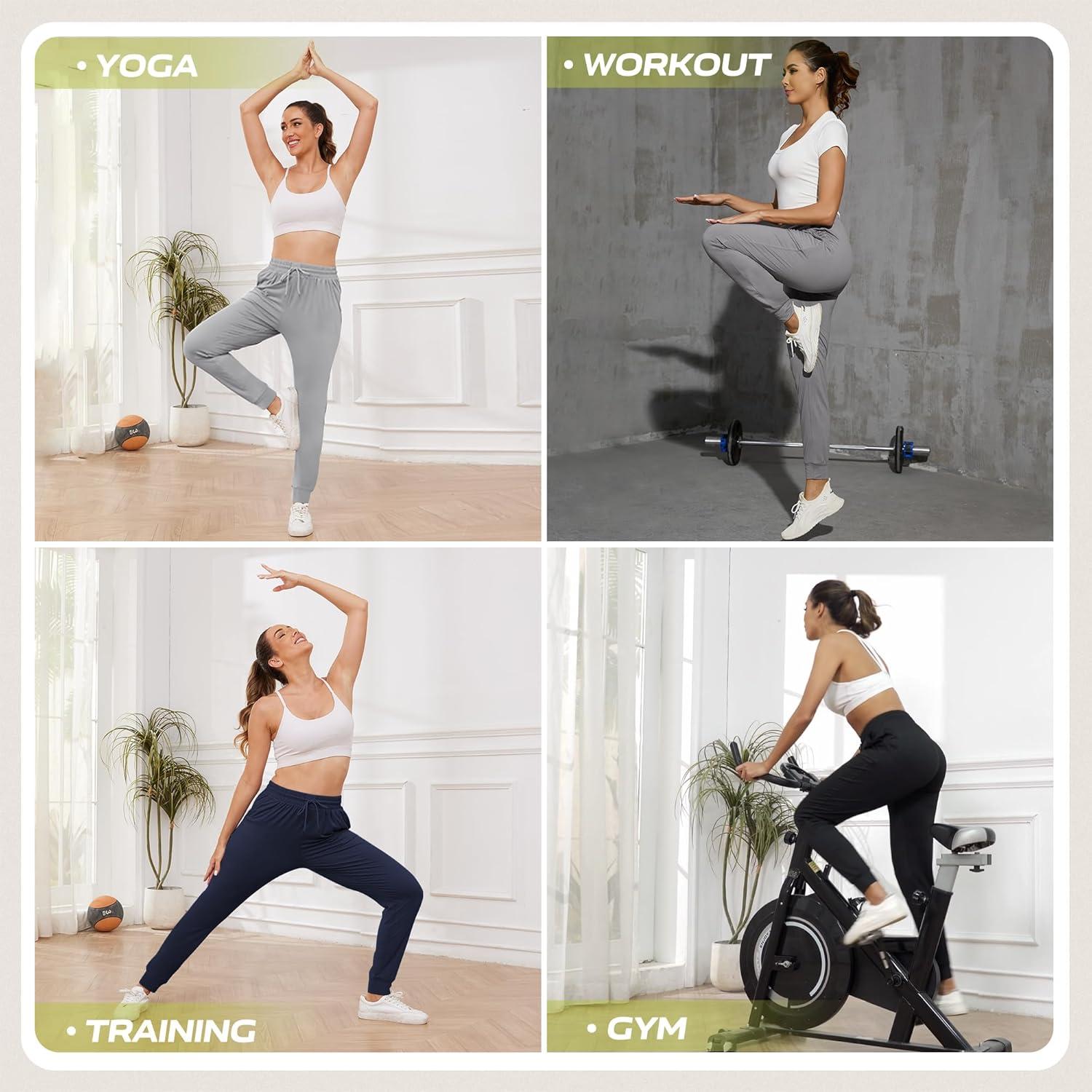 CE’ CERDR 3/1 Pack Lightweight Joggers for Women with Pockets Drawstring Athletic Sweatpants for Workout Yoga Running(3 Pack Black dark Grey pink)