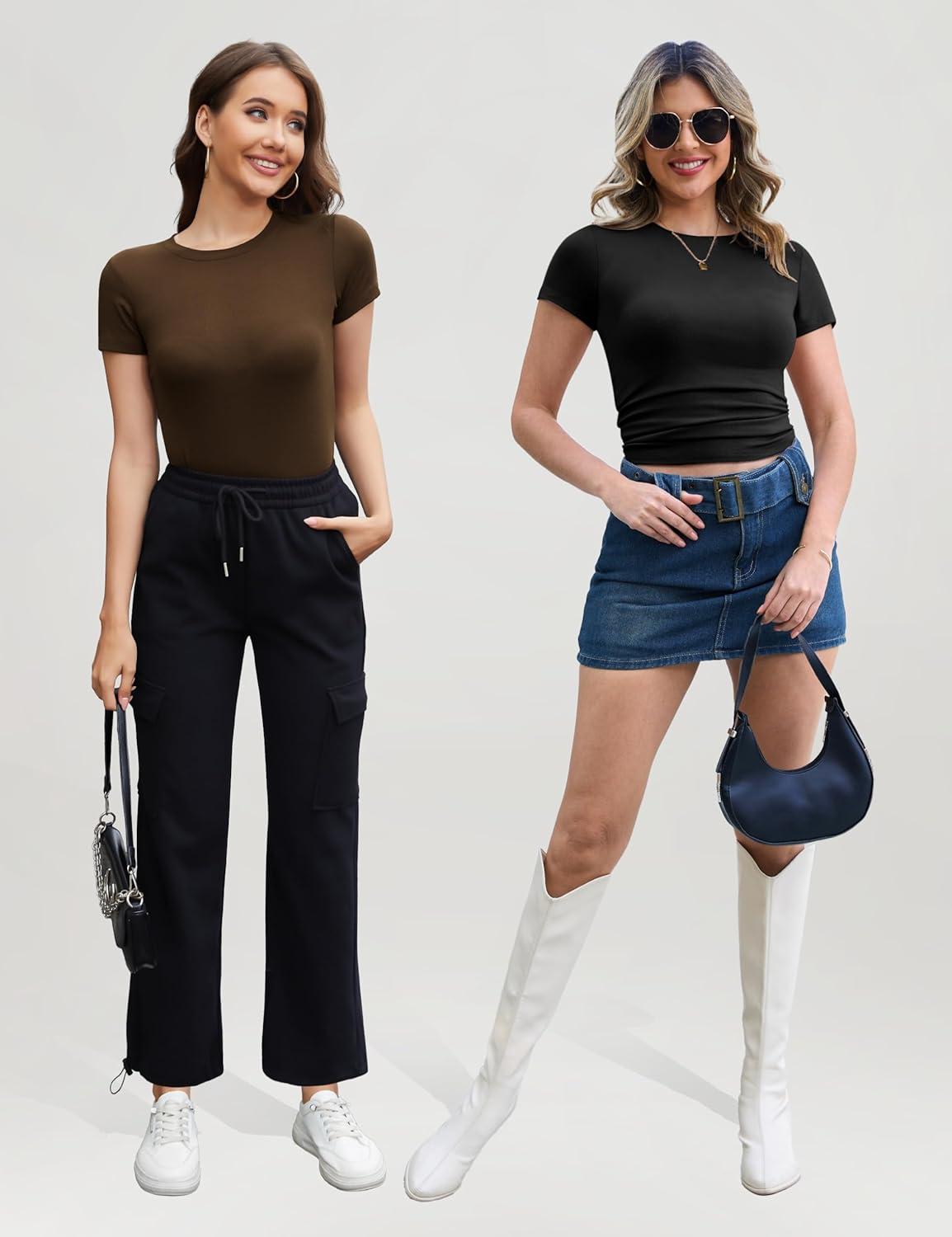 CE’ CERDR 3/5 Pack Womens T Shirts Crew Neck Short Sleeve Shirts for Women Casual Basic Fitted Stretchy Tee Tops(5 Pack Black Nude Light Grey Olive Green Coffee)
