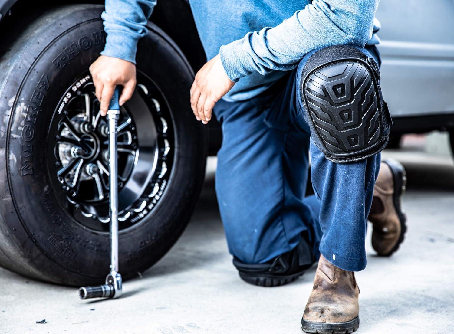 VERSATILE USAGE: With a soft gel core and EVA foam padding, these professional-grade knee pads serve a multitude of indoor and outdoor tasks—from wood flooring to gardening, carpentry, welding, roofing, tiling, cleaning, and and more
