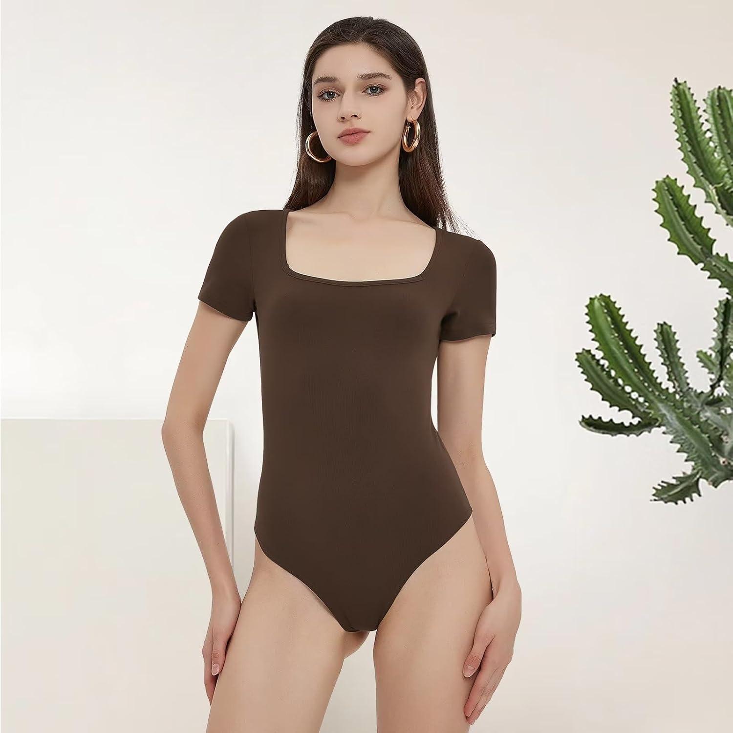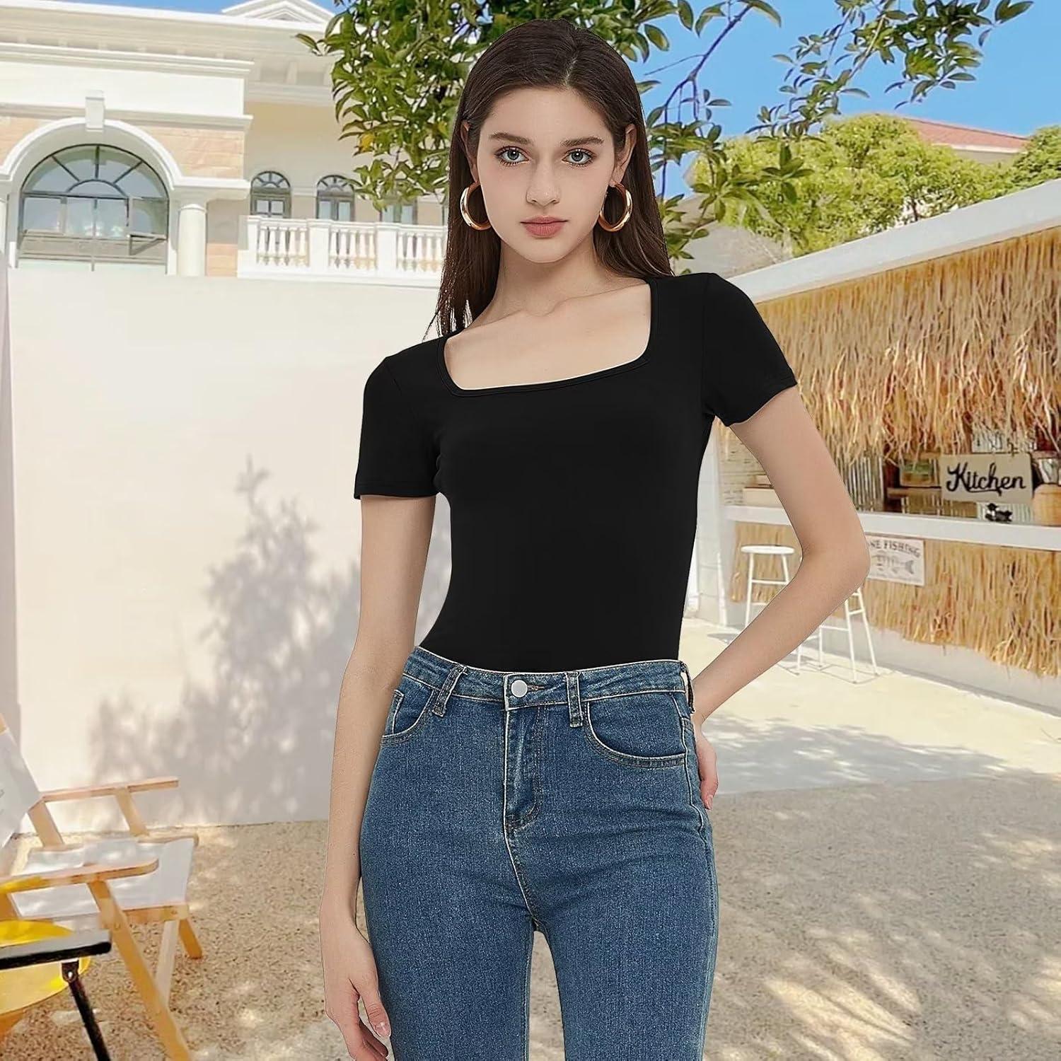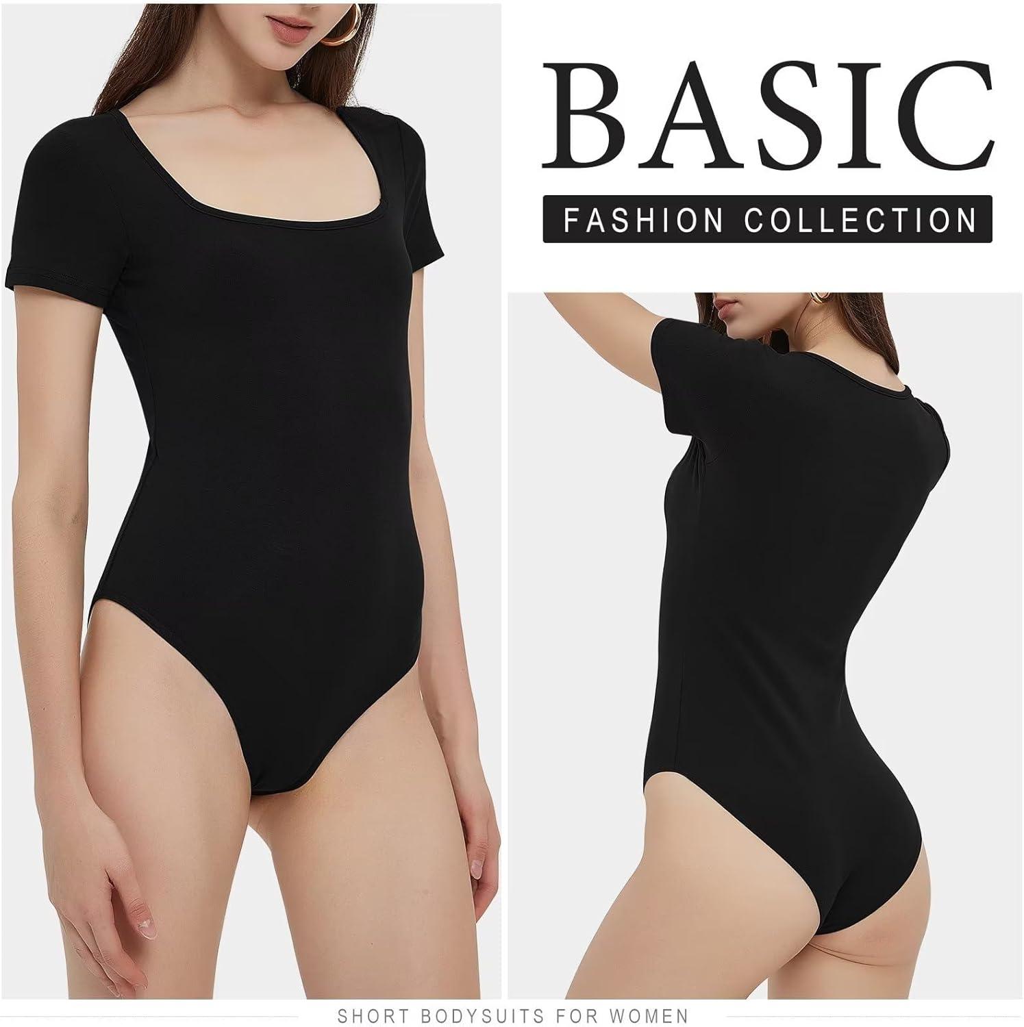 CE’ CERDR Women’s 5 Pack Short Sleeve Bodysuits Square Neck T-shirt Basic Casual Tops Body suit(5 Pack Black White Light Grey Navy Coffee)